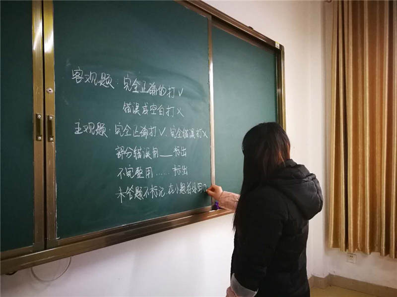 为顺利开展期末考试试卷的评阅工作,物理教研室主任解振平带领全体教师于1月8日下午在11号楼306一起学习了《山东华宇工学院试卷评卷实施细则》和《关于期末考试试卷评阅的补充说明》。