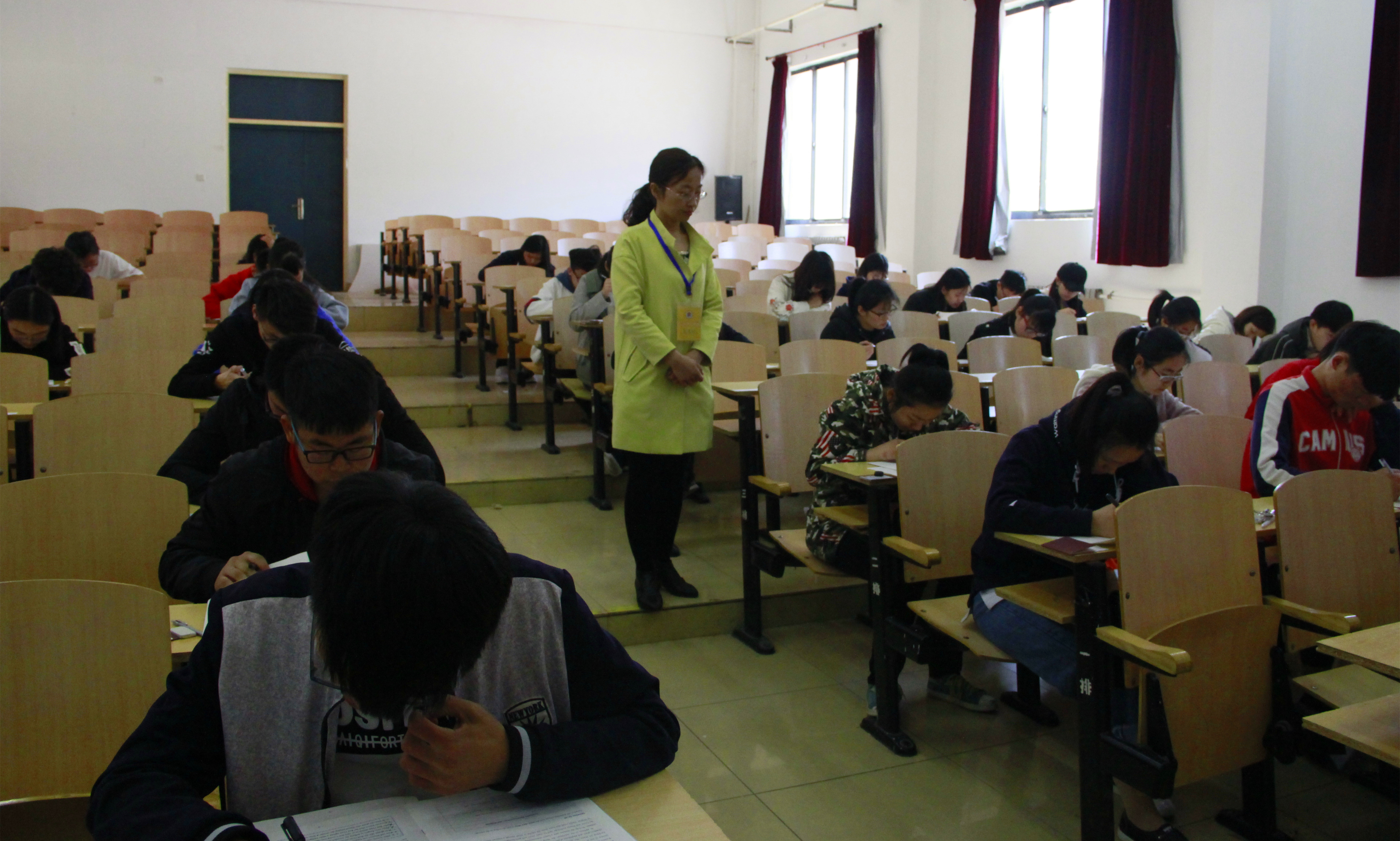 本次竞赛得到了校领导的高度重视,在各级领导和基础教学部的精心指导全力以赴工作下,本次竞赛得以顺利组织。本次竞赛共设立11个标准化考场,历时两个小时,全程监控录像。上午9:00竞赛正式开始,考试期间,考风严谨、秩序井然。学生认真作答,圆满完成了听力、阅读、翻译、写作等测试题目。上午11时考试结束,收卷工作有条不紊,考场内的同学陆续有序离开。