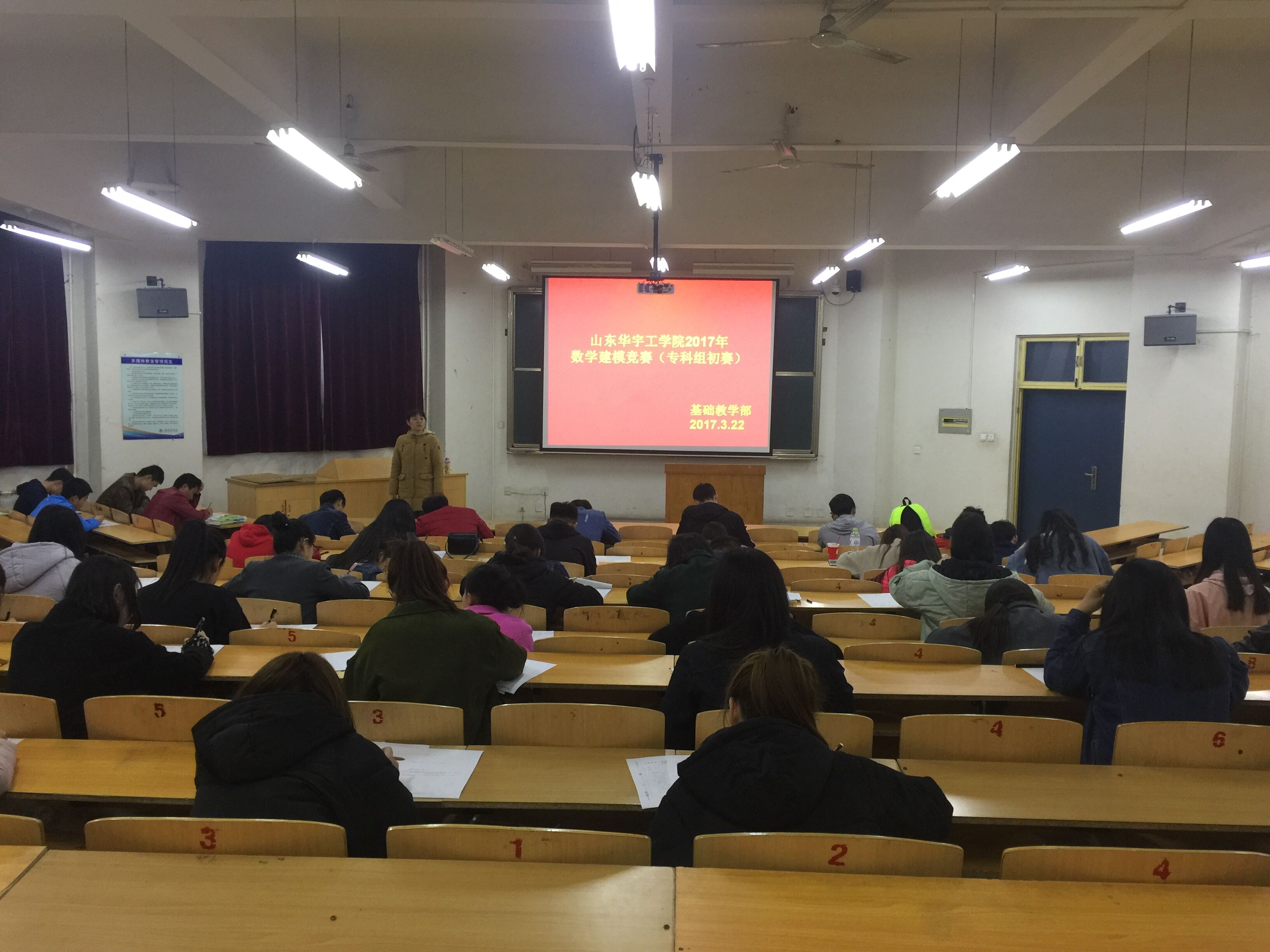 3月22日16:00—18:00,基础教学部数学教研室在6号楼101、104室举行了山东华宇工学院2017年数学建模竞赛选拔赛(专科组初赛)。