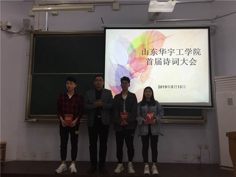 山东华宇工学院校园花香袭人,书香阵阵。为提高欧冠官网学生人文知识素养,传承文学经典文明, 5月13日下午,由基础教学部主办,五年制高职学院承办的首届诗词比赛活动如期在6号楼101举行。基础教学部副主任李琦,五年制高职学院院长高博出席了本次古典诗词文化盛会,基础教学部语文教研组全体教师与五年制高职学院部分教师担任现场评分嘉宾。