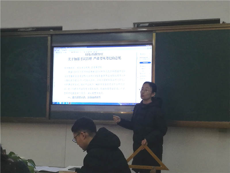 会上,副主任李琦先宣读了《山东华宇工学院关于开展“强学习、提站位、深反思、促整改”专项教育活动的通知》,并强调开展此次专项教育活动的意义。随后,带领大家学习了《新时代高校教师职业行为十项准则》、《山东省教育厅关于加强考试管理严肃考风考纪的意见》(鲁教招字〔2017〕2号)、《山东省学校安全条例》三个文件,及两个通知。在学习过程中,李主任结合学校和本单位实际进行了详细的解读。李主任要求,通过本次学习,部门将要严肃工作纪律,做到全员覆盖无死角。一是全体教职员工要认真参与理论学习活动,结合案例,认真查找自身存在的问题和不足,并提出工作改进措施。二是本部门重点排查是否存在商业广告、商业活动、有害APP进校园问题;是否存在招生考试管理松懈、政策规定执行不严不实问题;是否存在师德失范、教师有偿补课问题;是否存在意识形态工作责任制不落实、网络與情问题等。三是切实做到边学边改,确保专题教育活动不走过场,狠抓落实。