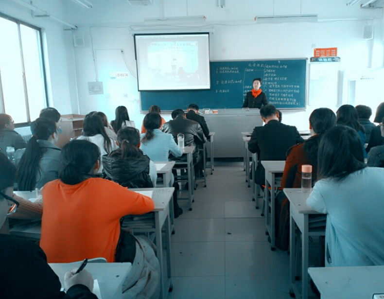 赵教授从五方面介绍了说课的意义和作用,让大家明白了说课对一名教师职业的重要性。紧接着阐述了说课的起源时间和发展过程,使老师们对说课形成的过程有了更深入的了解。最后强调了说课的定义,让大家明白了,说课就是教师告诉大家“教什么,怎样教,为什么这样教”的一个过程。同时赵教授结合英语教学实例,深入浅出地重点讲解了说课的方法。每位教师对说课的环节和步骤,每个环节具体要说什么,怎么来说,以及说课中易犯的错误和需要注意的问题等方面都有了更直观的认识。