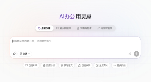 灵犀AI办公系统集成了智能文档生成、数据处理、演示文稿制作、内容分析等多项AI能力,可帮助师生高效完成文档撰写、润色、数据分析、课件制作等日常办公任务,有效提升工作效率。
