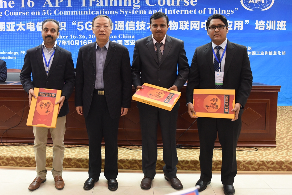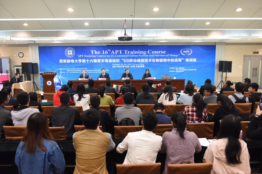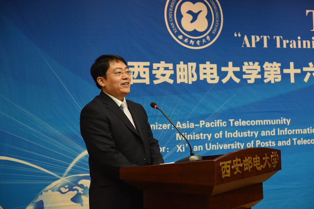 本网讯 10月26日上午,kaiyun登录中国入口登录第十六期亚太电信组织(APT)培训班闭幕式在长安校区学术交流中心举行,校长范九伦教授出席并为学员颁发结业证书,通信与信息工程学院院长卢光跃教授主持闭幕式。