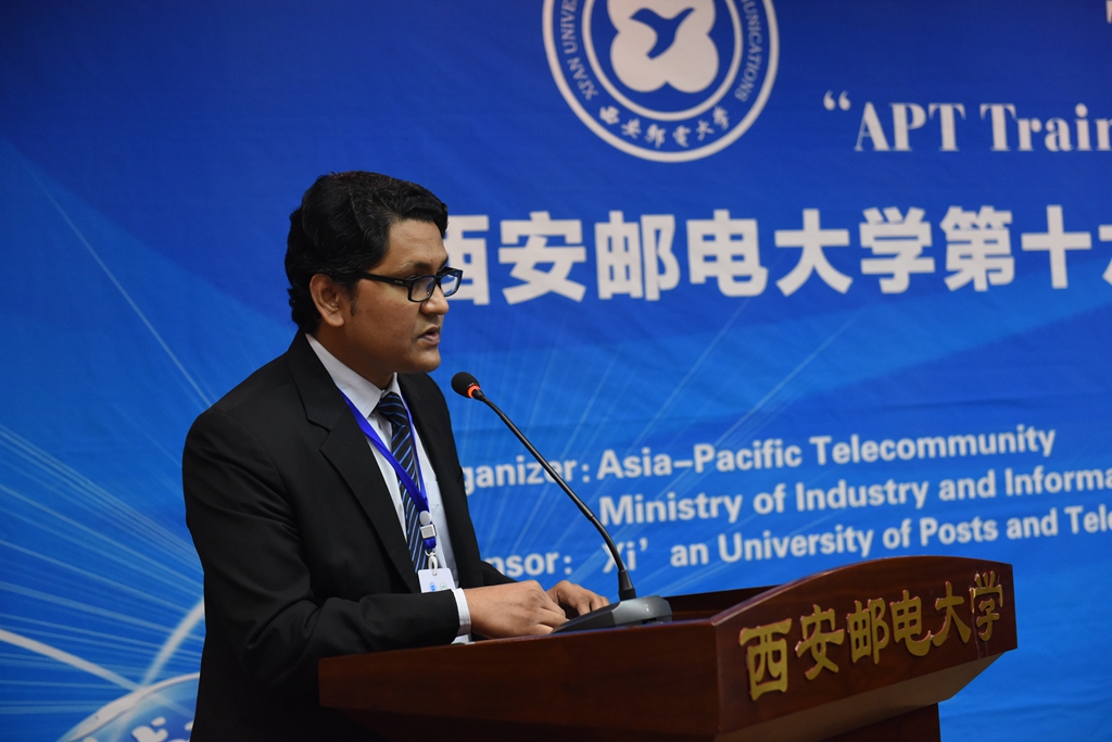 来自孟加拉国的学员阿索尔代表所有学员发言,感谢APT总部和kaiyun官网给所有学员提供学习、交流的机会,感谢所有授课老师细致、耐心的讲解和kaiyun官网志愿者为本次培训工作所付出的努力。阿索尔表示大家虽然来自不同的国家,但是在2周的培训里加深了友谊,增长了知识,感谢西邮给了大家美好的回忆。通信与信息工程学院艾达教授代表教师发言,他希望学员能够把所学到的相关技术带回本国,促进国家的5G移动通信和物联网技术的应用与发展。