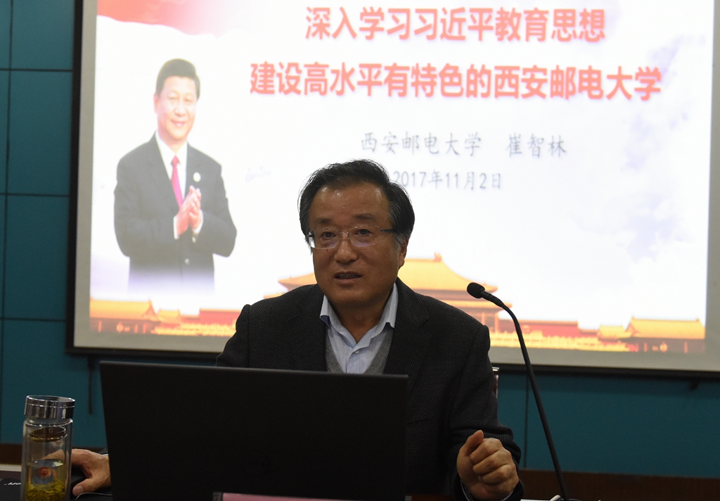 在专题报告中,崔智林指出党的十九大是在全面建成小康社会决胜阶段、中国特色社会主义发展关键时期召开的一次十分重要的大会。当前,全国上下都迅速掀起了学习宣传贯彻党的十九大精神的热潮。学懂弄通做实党的十九大精神,是当前和今后一个时期全校的首要政治任务。十九大报告,主题鲜明、思想深邃、内涵丰富、大气磅礴、令人振奋,站在历史和时代高度,鲜明提出了新时代中国特色社会主义思想和一系列符合中国实际的重大战略举措,深刻回答了新时代坚持和发展中国特色社会主义的一系列重大理论和实践问题,通篇闪耀着马克思主义真理的光芒。全校上下要认真学习领会习近平总书记报告的精神内涵,深入掌握新时代、新思想、新矛盾、新使命、新征程的核心要义。