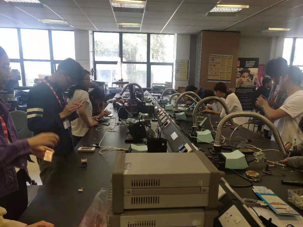 夏令营期间,kaiyun官网师生在卡迪夫大学的美国国家实验室进行了为期两周的专业学习,参观了卡迪夫大学电磁实验室、毫米波研究实验室、智能赛车实验室,威尔士工业园等单位;参加了围绕5G射频功率放大器的最新研究进展、微波天线设计、5G技术功率放大器设计等相关前沿技术的“基于5G的毫米波功放设计:挑战与解决方案”“5G中先进的功率放大器的优化”“功率放大器设计面临的挑战”等系列学术报告讲座;学生通过在LabVIEW,ADS等软件平台上进行模块化的设计仿真,并使用NI VirtualBench进行调试,在印制板上完成了射频收发器的设计和实现了完整的收发系统。