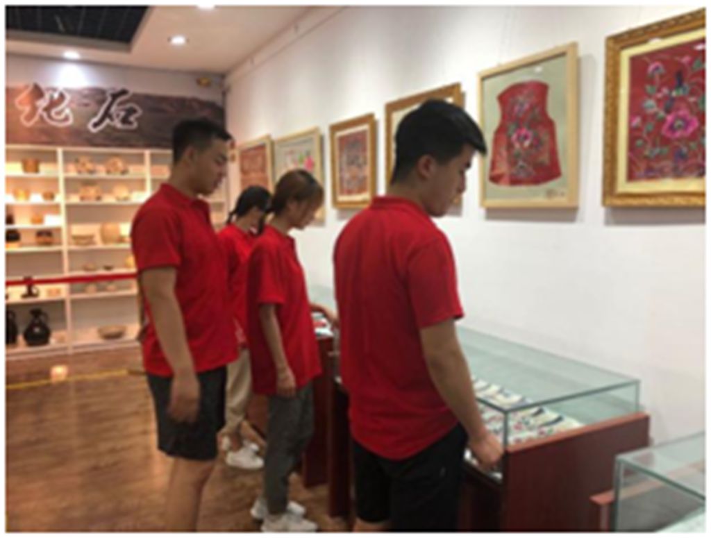 在渭南澄城县文化馆,全体师生在讲解员的带领下,参观了包括澄城县刺绣和澄城尧头陶瓷烧制技艺两项国家级非物质文化遗产,澄城面花等多项陕西省非物质文化遗产。在专业技师的指导下,体验了澄城尧头陶瓷的烧制技艺,对当地的非物质文化有了更深入的理解。