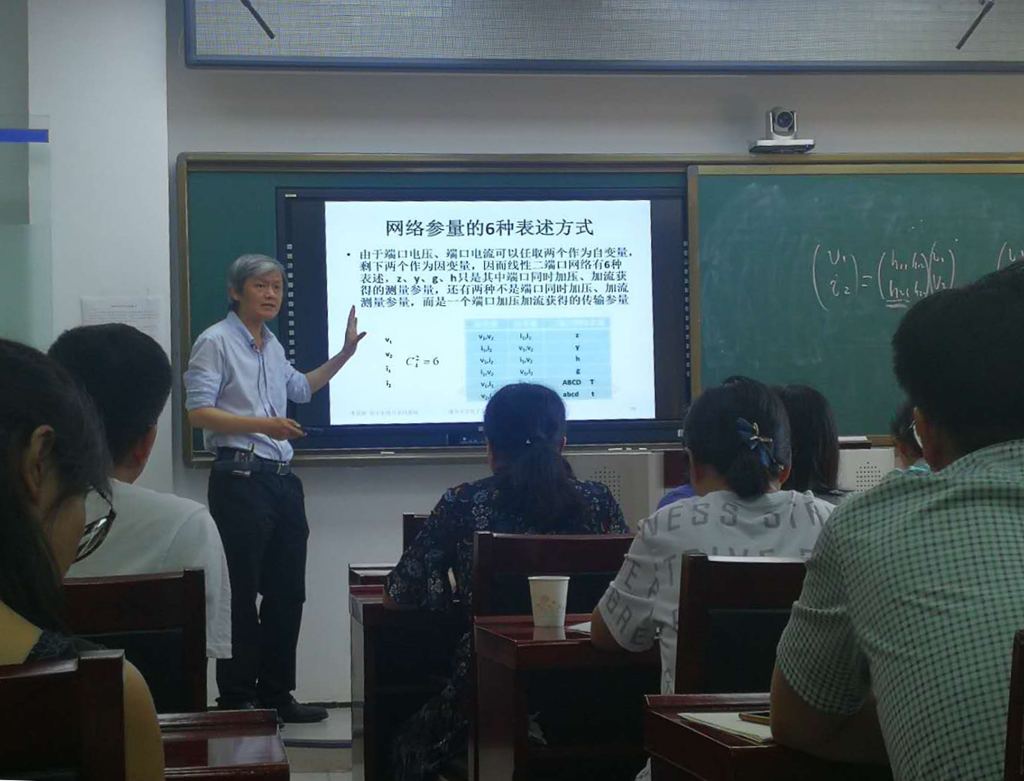 李国林教授介绍了清华大学的课程教学改革,即以电路抽象为主干,以线性电阻电路、非线性电阻电路、一阶动态电路、二阶动态电路为4个分支,对《电路分析基础》《模拟电子技术基础》《数字逻辑电路》《通信电子电路》4门课程的相关重点知识点进行了梳理,建成了《电子电路与系统基础》课程。李国林教授结合电源和电阻I、电源和电阻II、电路基本定律和基本定理、等效电路法单端口线性网络、等效电路法双端口线性网络等内容讲授了6节示范课。