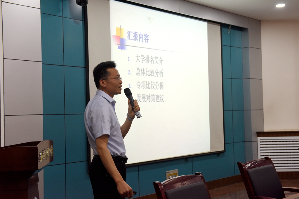 潘新兴从大学排名简介、总体比较分析、专项比较分析、发展对策建议等四个方面做了深入阐述。他对国际知名的大学排行榜、国内主要大学排行榜作了简要介绍,分析了武书连大学排名的三个指标体系。以国内8所同行业高校和省内8所理工类高校为基础,对2004年至2018年十五年间高校排名情况作了对比。从研究生培养、本科生培养、自然科学研究、社会科学研究等四项分值入手,分析了kaiyun官网十五年间的变化情况。从近五年kaiyun官网教师水平、新生水平、自然科学类专业、社会科学类专业与相关高校进行了专项排名对比,有针对性的从9个方面提出了西邮的发展对策及建议。