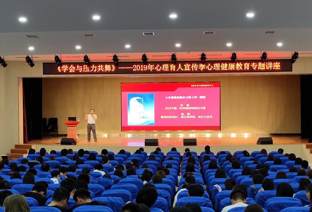 本网讯(通讯员 张燕花)5月16日下午,学生工作部在雁塔校区图书馆五楼报告厅举办了《学会与压力共舞》心理健康教育专题讲座。讲座由西北大学心理健康教育中心常务副主任张向强主讲。学工部相关工作人员、经济与管理学院、现代邮政学院和继职学院的400余名师生到场聆听。