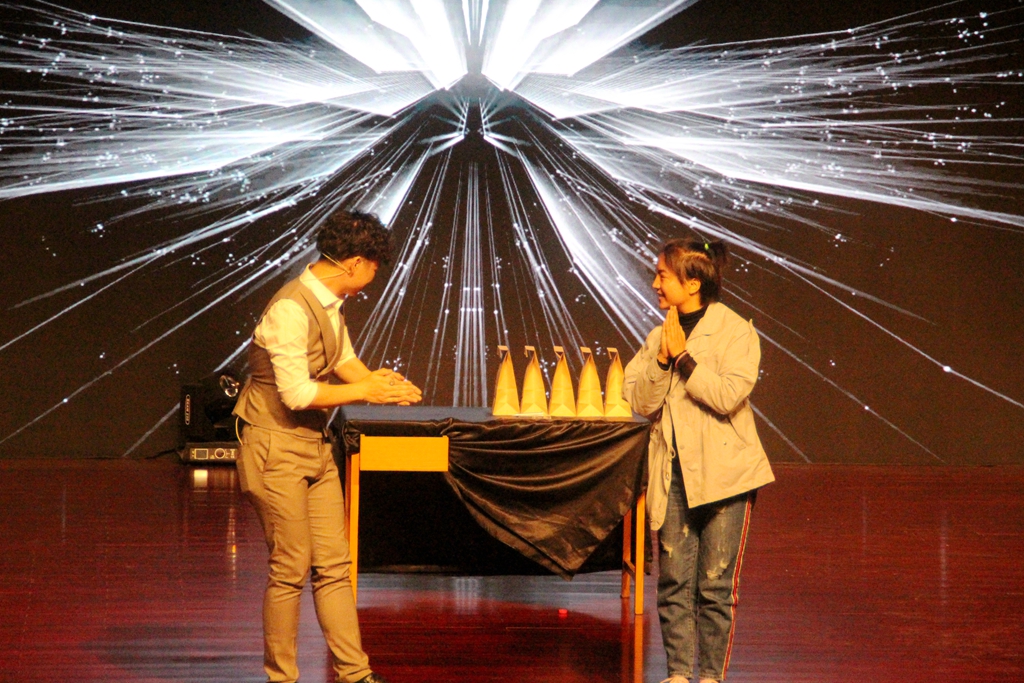 本网讯 (通讯员 尹宗亮)5月14日晚,由校团委主办,校学生社团联合会承办,学校各社团倾力打造的第十六届社团巡礼月“奏巡礼乐章 品百社风华”闭幕式晚会在大学生活动中心举行。晚会多彩多样的活动展示、青春活泼的活动氛围吸引了近千名师生观看。