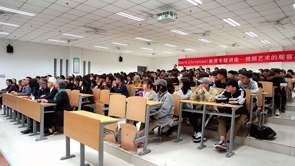 葛瑞特·克里斯提尼教授从丹妮卡·达基奇录像作品《自画像》引入,讲述了视频艺术的历史,介绍了视频艺术之父白南淮先生,约瑟夫·布伊斯及比尔维奥拉等大师的作品。同时,她从视频艺术的角度系统梳理了媒介艺术,包括文化、技术、科学和社会之间的关系。葛瑞特·克里斯提尼教授语言生动形象,案例引用丰富,全面系统的阐述了对视频艺术的理解。互动环节中,学院师生踊跃提问,葛瑞特·克里斯提尼教授就相关问题一一解答,现场学术气氛热烈。