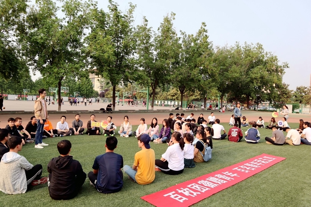 本网讯 (通讯员 白春乐)为深入学习贯彻习近平总书记在纪念五四运动100周年大会上的重要讲话精神,5月4日下午,理学院在长安校区操场举行“百枚团徽赠青年 百名青年话五四”主题团日活动,理学院党委书记杨爽、全体辅导员、班主任老师以及全体团员青年400余人参加活动。