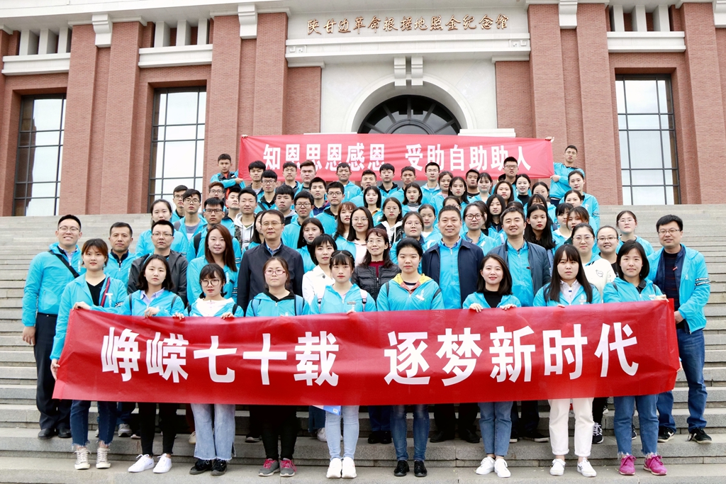 本网讯 (通讯员 刘凯元)4月13日,kaiyun官网联合陕西科技大学、西安工程大学、西安外国语大学、西安翻译学院等四所高校,组织受助学生赴陕甘边革命根据地开展了“峥嵘七十载 逐梦新时代”主题爱国主义教育活动。省教育厅学生资助管理中心胡惠群、罗媛应邀参加,五所高校近百名师生共同参加活动。
