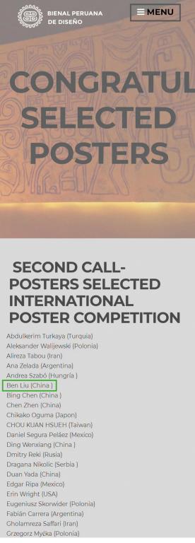 秘鲁国际设计双年是秘鲁常设国际性设计专业赛事,每两年举办一次。本次大赛共收到全球10576幅海报作品,经评委组10位国际评委高标准、高要求的评选,最终精选出了79幅作品,入选作品将在秘鲁美丽的海港城市Callao卡亚俄市展出。