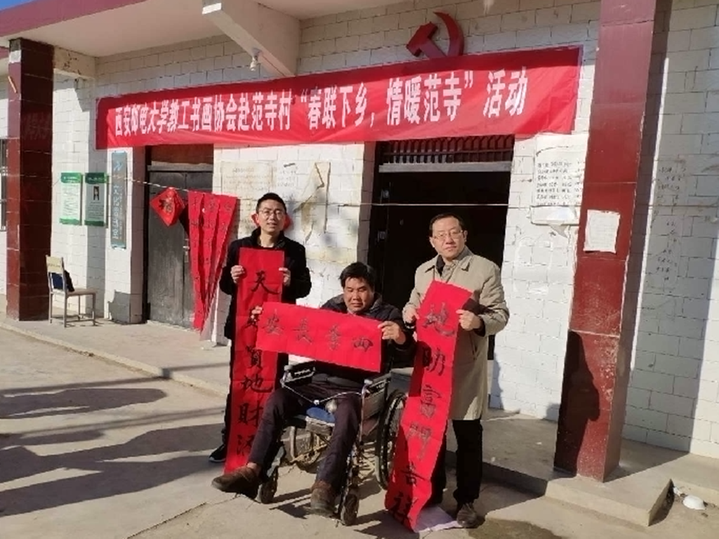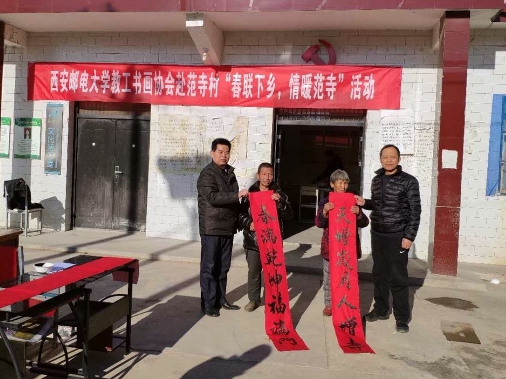 本网讯(通讯员 古卫涛) 近日,校纪委、校工会组织教职工书画协会部分教师和帮扶干部一行7人深入kaiyun官网定点帮扶贫困村——铜川市宜君县范寺村,开展“春联下乡 情暖范寺”活动。