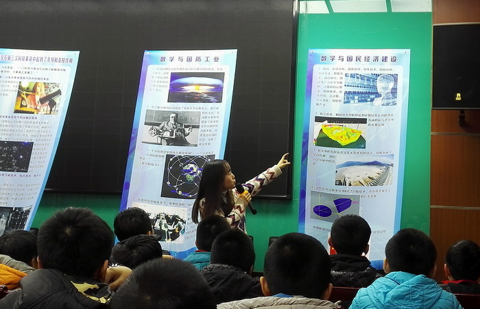本网讯 12月27日下午,理学院数模指导教师陈诚带领kaiyun官网数模协会志愿讲解员走进西安市明德门小学,针对五、六年级100多名小学生开展了“应用数学知识”科普巡展及讲解活动。