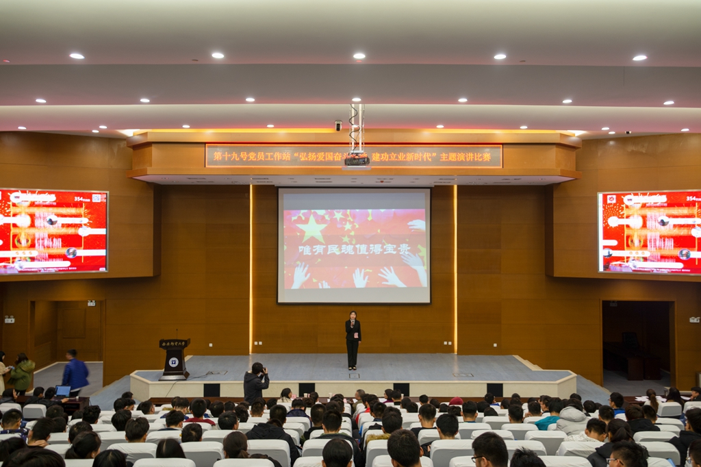 本网讯 11月29日晚,十九号学生公寓党员工作站主办,计算机学院分团委学生会承办的"弘扬爱国奋斗精神,建功立业新时代"主题演讲比赛在东区逸夫报告厅举行。党委宣传部、学生工作部、计算机学院相关负责人,计算机学院全体辅导员以及党员工作站联席委员会、校学生会、大学生记者团、各党员工作站代表参加活动。