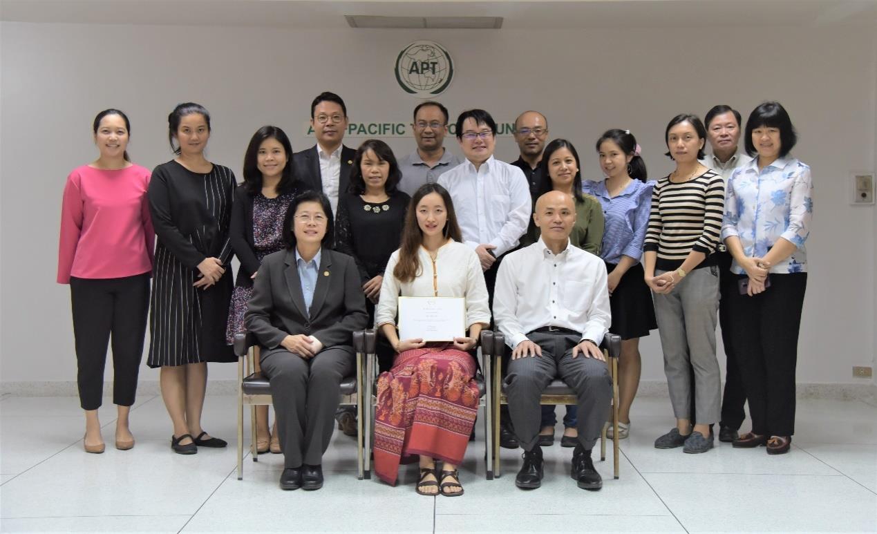 本网讯 近日,kaiyun官网获国家留学基金委国际组织实习项目资助的通信与信息工程学院16级研究生韩懿斐顺利完成了在亚太电信组织曼谷总部为期三个月的实习。