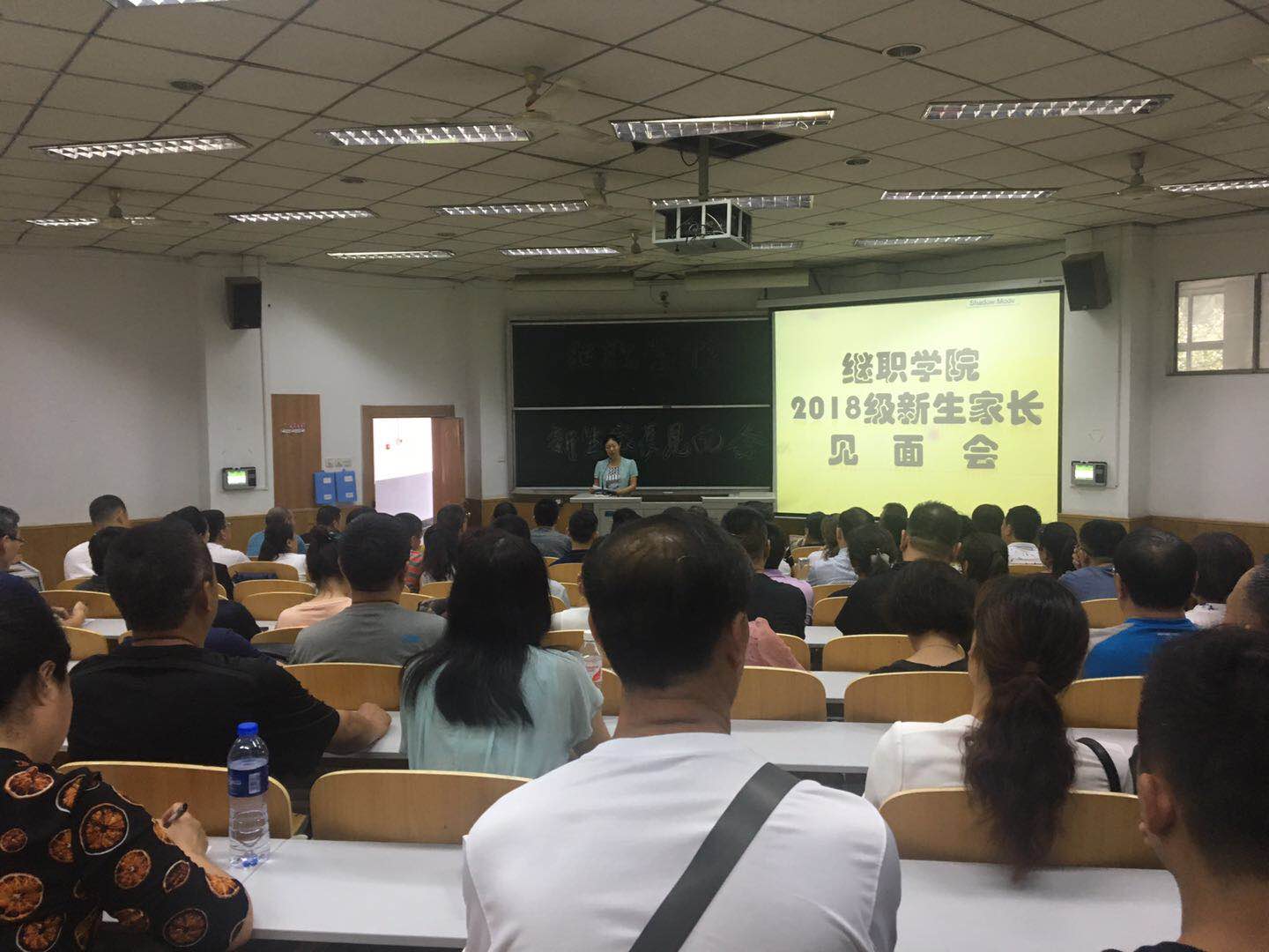 本网讯 学生在校成长成才需要家校的共同努力,9月2日下午,继职学院在雁塔校区B101教室举行了2018级边防军人子女预科生家长见面会。会上,继职学院院长张继荣、党总支书记王大力、副院长张宁分别就学校及学院的情况、预科生培养管理、专业分流等方面进行了详细介绍,参会家长也纷纷就课程、专业分流等相关问题进行了交流,家长见面会旨在建立家校沟通的桥梁,形成了学生培养管理家校合力。