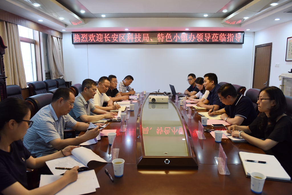 赵忠良介绍了长安区在特色小镇建设、工程技术中心建设、双创改革、人才计划等方面的政策和实施情况。特色小镇办科长张宇刚、副科长李永介绍了西安市和长安区特色小镇建设情况,重点介绍了长安大学城梦想小镇等3个特色小镇的相关情况。