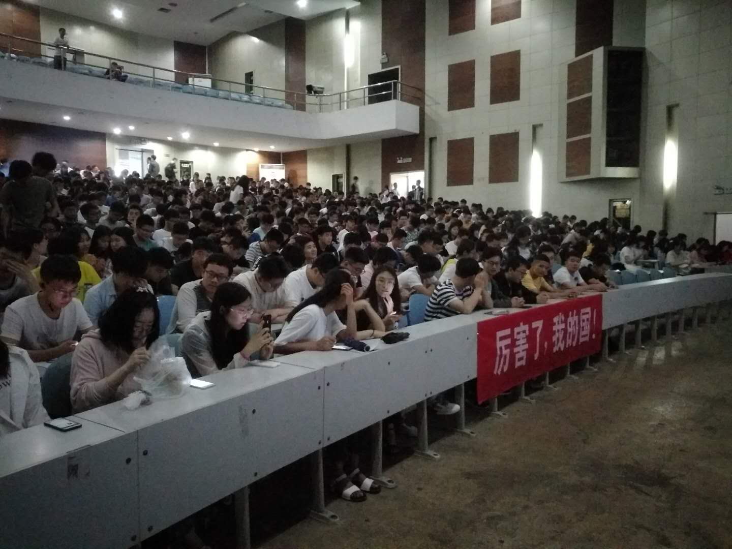本网讯 5月20日下午,电子工程学院党委组织2017级全体学生和入党积极分子、学生党员、党员工作站站务委员1000余人在长安校区大学生活动中心观看纪录片《厉害了,我的国》。