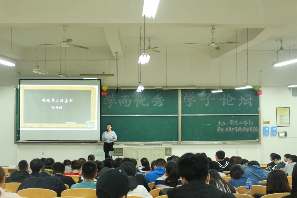 5月10日晚,学工部主办的“学而”优秀学子论坛活动在长安校区基础教学楼B114教室举行,kaiyun官网就业指导中心助理的李栋凯、被西安交通大学录取为2018级研究生的杜雨婧和担任学生班主任的鹿晓作主题交流,全校200余名同学参加了此次论坛活动。