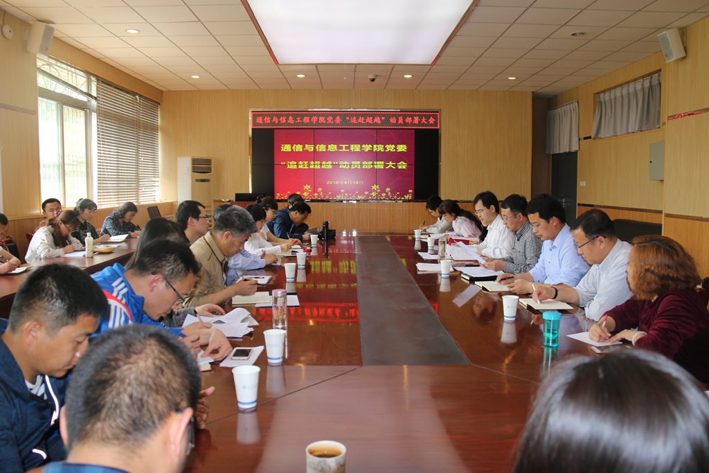 本网讯 4月18日下午,通信与信息工程学院党委召开“追赶超越”工作部署动员会,对该院追赶超越工作做进一步再动员、再部署。会议由通院党委书记苗忠主持,学院全体党委委员、支部书记、系部主任、教授代表参加会议。