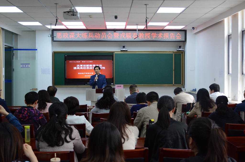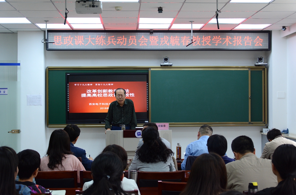 戎毓春教授在题为《改革创新教学方法,提高高校思政课实效性》的报告中,介绍了西安电子科技大学提升思政课教学质量的做法,畅谈了自己从事思政课教学46年的经验体会,希望大家要有事业自信、职业自信和课程自信,不断改革创新思政课教学方法,着力提高思政课教学的实效性,在大练兵中努力提升自己的教学科研水平。