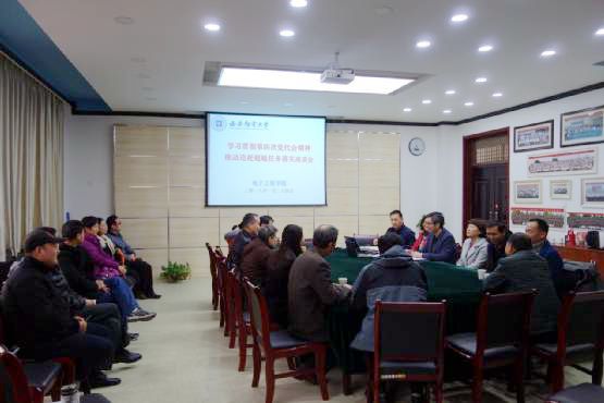 本网讯 1月24日,电子工程学院在长安校区西区2号实验楼会议室召开“学习贯彻四次党代会精神,推进追赶超越任务落实”专题会议,学院领导班子成员、全体教授、党支部书记、各系部负责人、各专业负责人、教师代表等参加。会议传达学校第四次党代会精神,安排党代会精神的学习宣讲工作,讨论学院追赶超越任务落实和专业培养方案修订等。