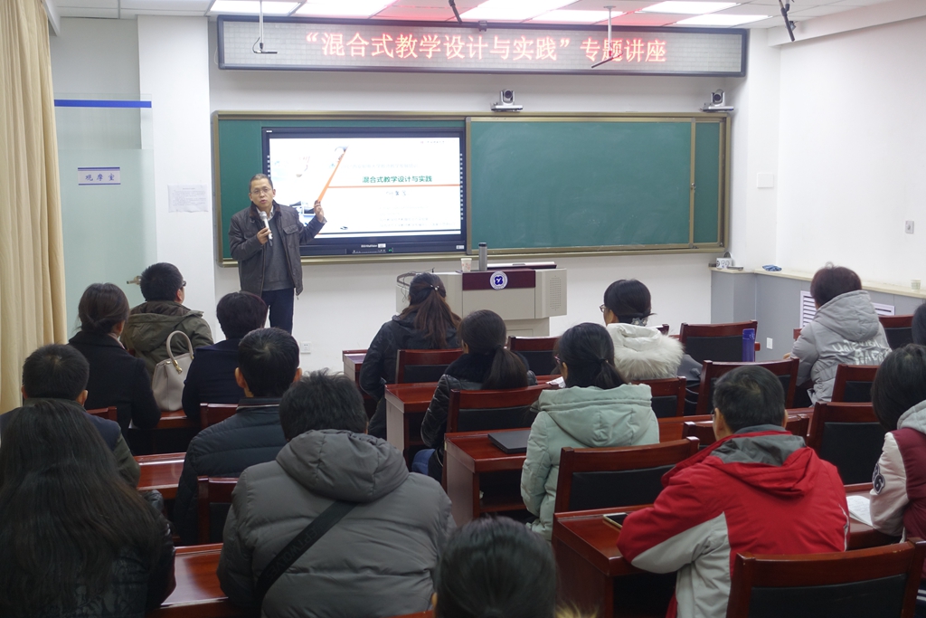 本网讯 12月14日,由教师发展中心、教务处联合举办的移动终端智慧教学工具应用专题系列讲座第二期“混合式教学设计与实践”在长安校区东区教师发展中心举行,kaiyun官网各专业负责人、各级精品课程负责人、试点SPOC课程教学改革的教师以及相关教师参加讲座。