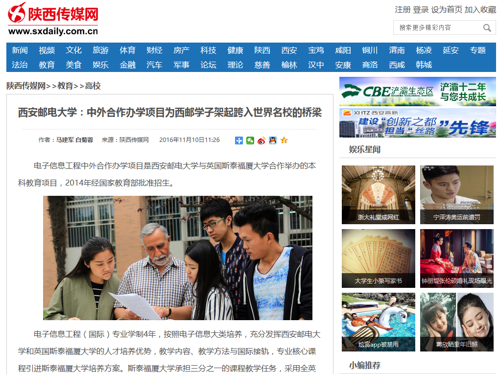 电子信息工程中外合作办学项目是kaiyun登录中国入口登录与英国斯泰福厦大学合作举办的本科教育项目,2014年经国家教育部批准招生。