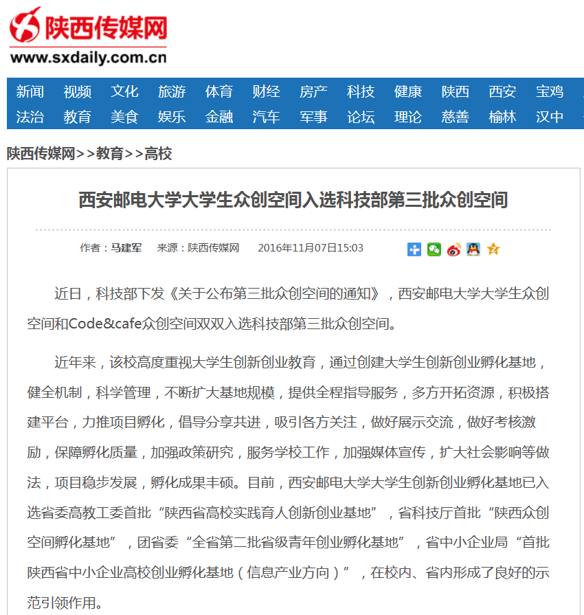 近日,科技部下发《关于公布第三批众创空间的通知》,kaiyun登录中国入口登录大学生众创空间和Code&cafe众创空间双双入选科技部第三批众创空间。