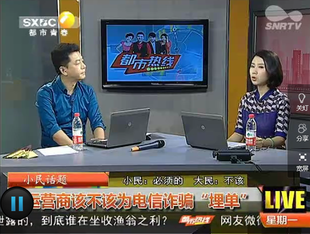 2016年8月30日,陕西电视台《都市热线》小民话题:运营商该不该为电信诈骗“埋单”
