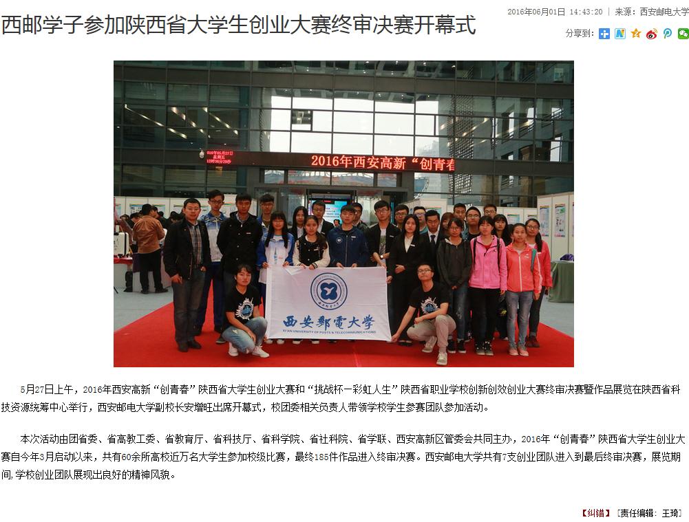 本次活动由团省委、省高教工委、省教育厅、省科技厅、省科学院、省社科院、省学联、西安高新区管委会共同主办,2016年“创青春”陕西省大学生创业大赛自今年3月启动以来,共有60余所高校近万名大学生参加校级比赛,最终185件作品进入终审决赛。kaiyun登录中国入口登录共有7支创业团队进入到最后终审决赛,展览期间,学校创业团队展现出良好的精神风貌。