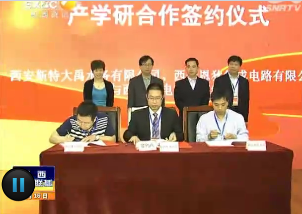 2016年5月16日,陕西电视台《陕西新闻联播》栏目报道陕西省科技成果与企业项目需求主题活动举行,西邮与西安斯特大禹水务有限公司、西安恩狄集成电路有限公司签订产学研合作协议。