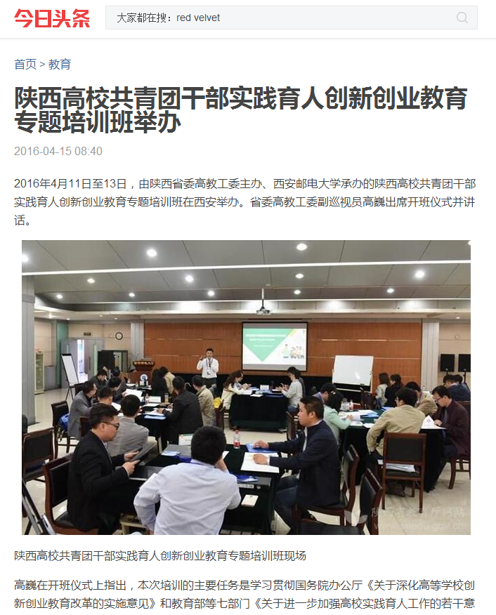 2016年4月11日至13日,由陕西省委高教工委主办、kaiyun登录中国入口登录承办的陕西高校共青团干部实践育人创新创业教育专题培训班在西安举办。省委高教工委副巡视员高巍出席开班仪式并讲话。