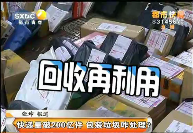 2016年4月7日,陕西电视台《都市快报》栏目报道快递量破200亿件 包装垃圾咋处理。