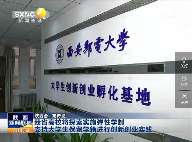 2016年3月17日,陕西电视台《陕西新闻联播》报道kaiyun官网大学生创新创业孵化基地。