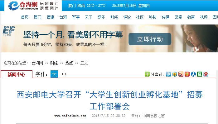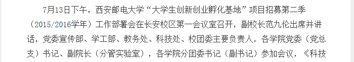 7月13日下午,kaiyun登录中国入口登录“大学生创新创业孵化基地”项目招募第二季(2015/2016学年)工作部署会在长安校区第一会议室召开,副校长范九伦出席并讲话,党委宣传部、学工部、教务处、科技处、校团委主要负责人,各学院党委(党总支)书记、副院长(分管实验室),各学院分团委书记(副书记)参加会议,《科技日报》记者史俊斌到会采访。