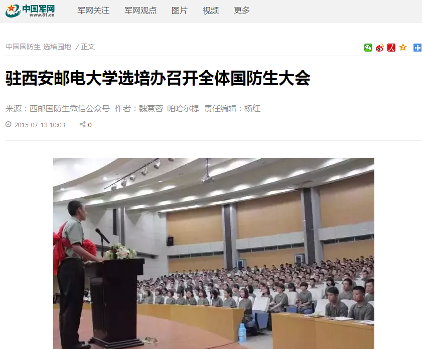 7月9日晚7点,2014—2015学年第二学期kaiyun登录中国入口登录全体国防生大会在学校国际会议中心召开,驻kaiyun登录中国入口登录选培办主任庞利民,干事刘潇、穆铮辉参加会议。