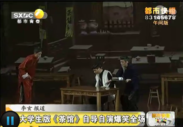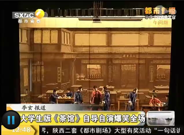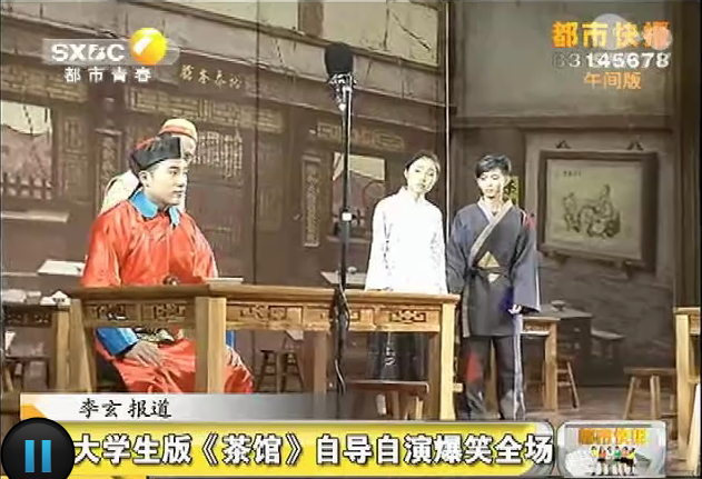 2015年4月23日,陕西电视台《都市快报》栏目报道大学生版《茶馆》自导自演爆笑全场。