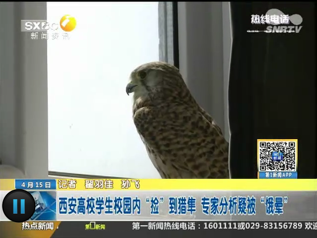 2015年4月15日,陕西电视台《第一新闻》栏目报道西安高校学生校园内“捡”到猎隼,专家分析疑被“饿晕”。