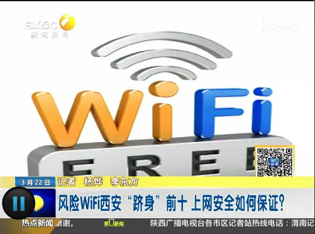 2015年3月22日,陕西电视台《第一新闻》栏目报道kaiyun官网教师吴昊风险WIFI西安跻身前十,上网安全如何保证。