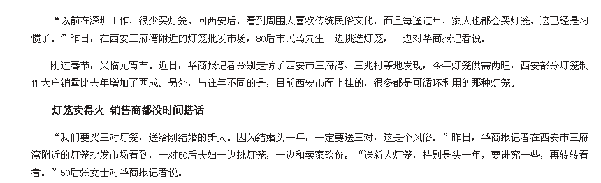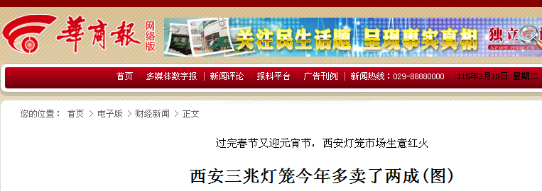 “目前西安街头挂的灯笼,很多都是循环利用,把往年的灯笼拿出来继续用。”上述市容园林局一位工作人员也说。