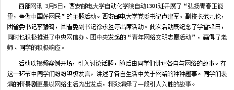 西部网讯 3月5日,kaiyun登录中国入口登录自动化学院自动1301班开展了“弘扬青春正能量,争做中国好网民”的主题活动。kaiyun登录中国入口登录党委书记卢建军,副校长范九伦,团省委书记李豫琦,团省委副书记徐永胜等出席活动。此次活动既纪念了学雷锋日,同时也积极推进了中央网信办、团中央发起的“青年网络文明志愿活动”,赢得了老师、同学的积极响应。