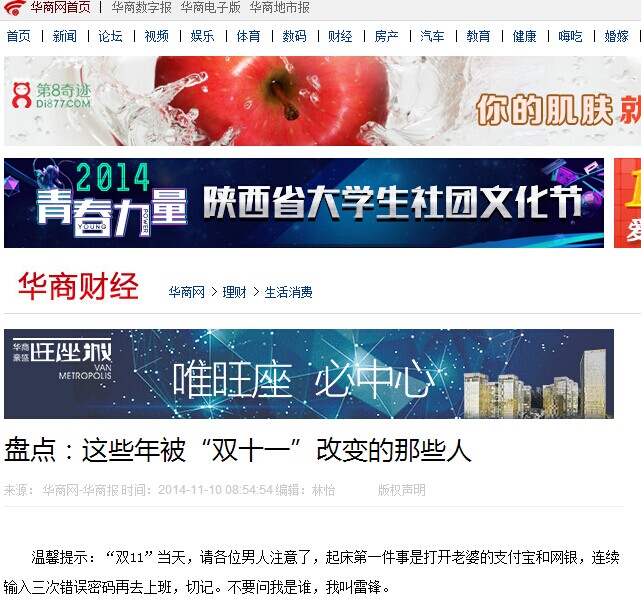 以上这些段子虽略有夸张,但是将网购及“双11”带给人们的改变描绘得入木三分。