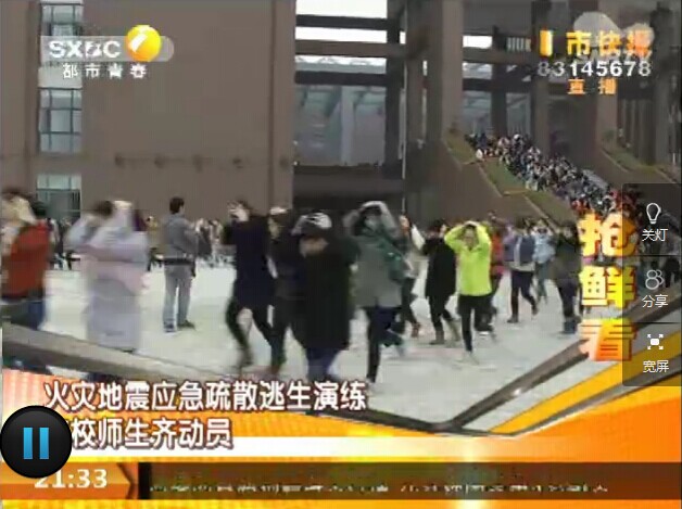 2014年11月8日,陕西电视台《都市快报》:火灾地震应急疏散逃生演练 高校师生齐动员