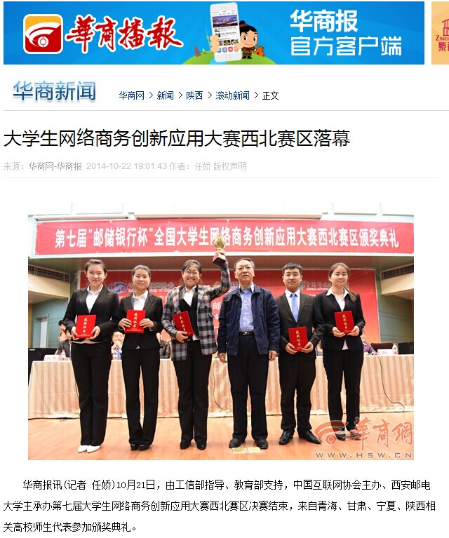华商报讯(记者 任娇)10月21日,由工信部指导、教育部支持,中国互联网协会主办、kaiyun登录中国入口登录主承办第七届大学生网络商务创新应用大赛西北赛区决赛结束,来自青海、甘肃、宁夏、陕西相关高校师生代表参加颁奖典礼。